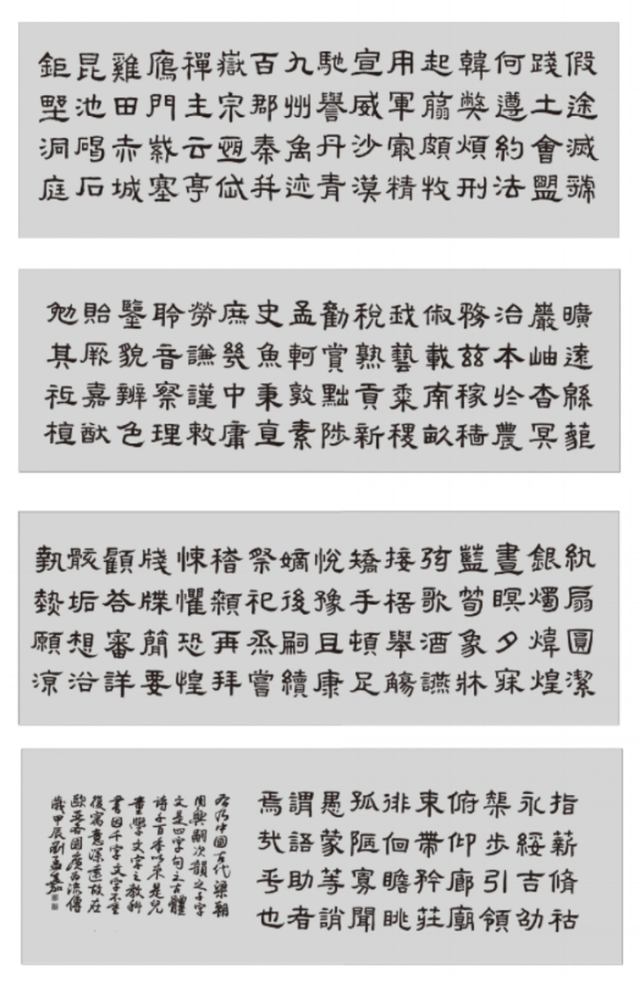 刘孟嘉教授于2006年在日本获博士学位,归国后,在山东师范大学任教授时完成了很多项目的科研工作,并由人民出版社出版了《书法哲学》和《书法美论与技巧》两部著作。《刘孟嘉大篆隶书千字文》就是依据这两部的书法理论书和艺术原则完成的。书中的大篆和隶书法度严谨,在字的结体、笔画间的布白、笔画的粗细变化方面充满了辩证关系。细观其笔画则笔笔有变化,给人一种厚重中生灵动之感,其书写率意流畅、干净圆润。